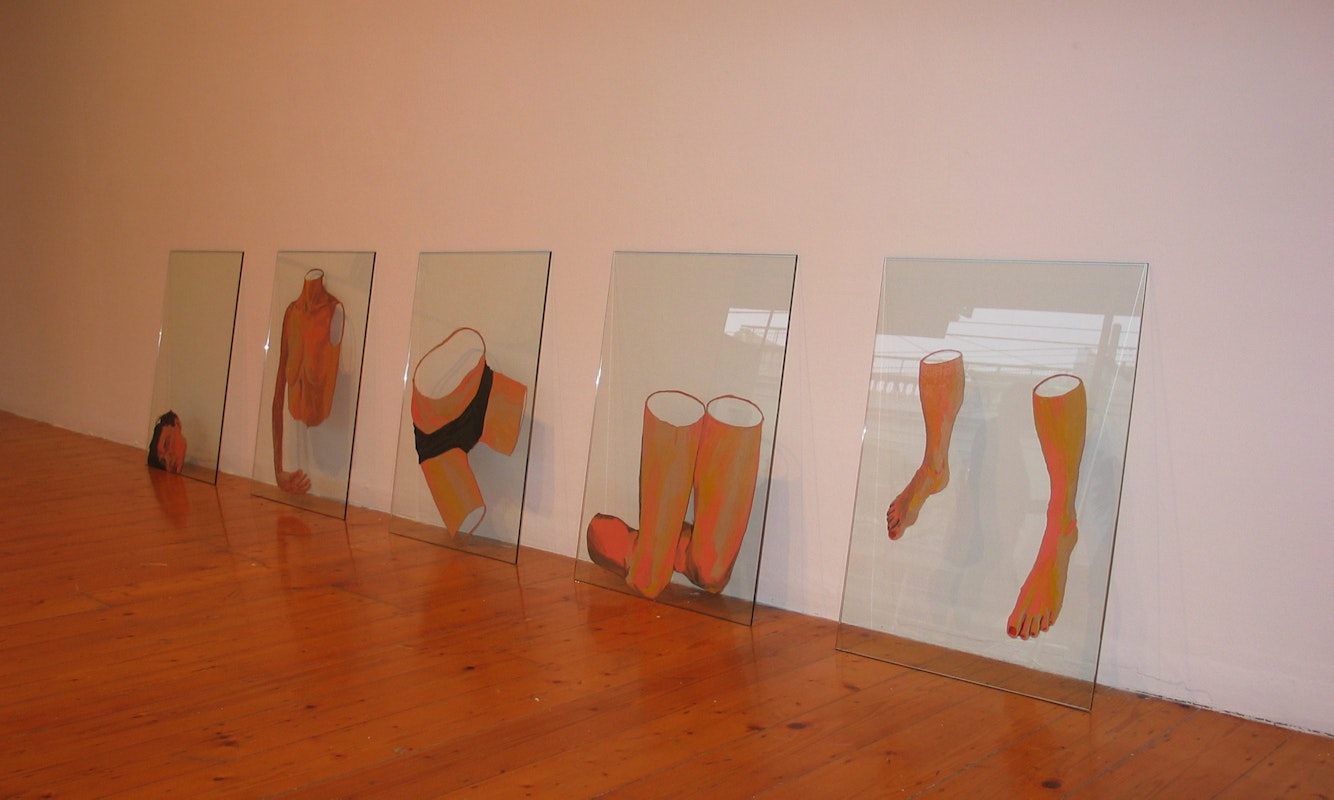 200 Gertrude Street, FitzroyHow close can the image get to its subject? Brisbane-based artist Miranda Williams explored this question by setting herself up in several different relationships with the painted image and its resulting reflection, a process which produced two distinct groups of self-portraits. Williams’ paintings managed to question the space between fiction and reality: literal methods of painting, such as pressing herself against a glass surface and painting her image on its reverse side, resulted in fictional- or fabricated-looking works, while those which were necessarily contrived to depict the true state of the represented subject appeared to be more “real”. That Williams' self-portraits failed to say very much about their ostensible subject, despite the transparency of their material and methods, suggests that the artist's use of her own image has acted as a conceptual strategy, rather than a subject in the terms of traditional portraiture. Paradoxically, what the viewer might have seen is a portrait of themselves, seeing: turning around the initial question to ask whether the image and its subject are not, at one point, already the same thing.
