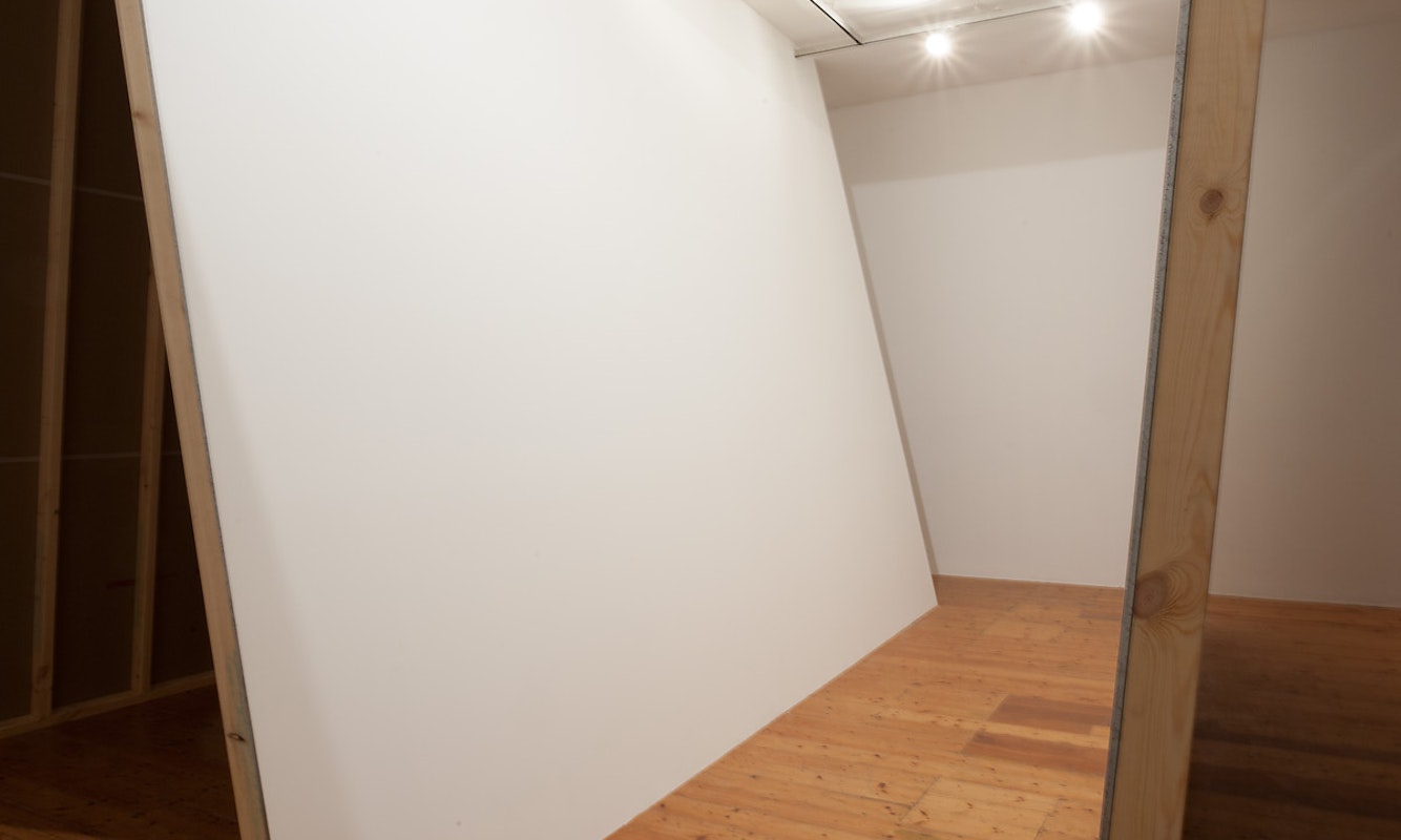 Six wall planes were inserted into the gallery, enfolding the space in an all-encompassing concertina. Three deep ‘valleys’ carved the rooms, repeating from floor to ceiling. Walking through these angular passages the viewer was variously enveloped in light and dark; we experience an internal space that refers constantly to the outside world.