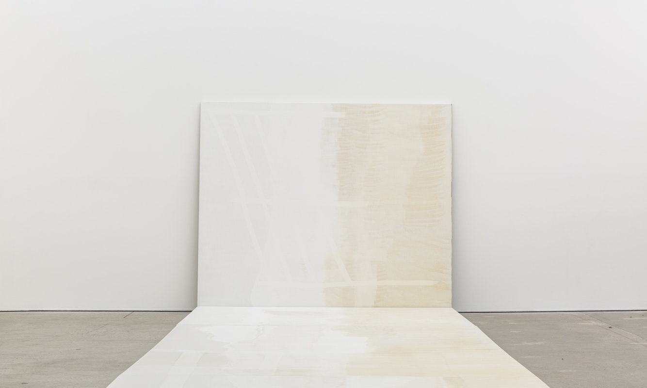 The Golden Mile was D Harding’s first solo exhibition in Melbourne, and expanded upon a central mode of practice developed over previous years by the artist, working with members of family and connecting to and embedding an ancestral lineage in his storytelling. Working within a reductionist palette of natural yellow ochre using dry pigments mixed with natural binders, Harding and familial collaborators have worked on a series of canvases in Brisbane where the artist is based. In this form the works have been transported to Melbourne and sequentially installed upon the gallery walls. Thereafter, all discernible images are obliterated, culminating in the eradication of the works utilising the white paint of the gallery. Through this, the paintings remained merely as a trace of the performative enactment of their erasure, as if to be residual rectangular stencils of an act unseen. Repositioned in the gallery as now whitewashed paintings, these erased works remained as echoes of an act that is not one of violence or censor, but rather, a respectful acknowledgement of the artist presenting work in a place, on country, that he does not have direct connection to.